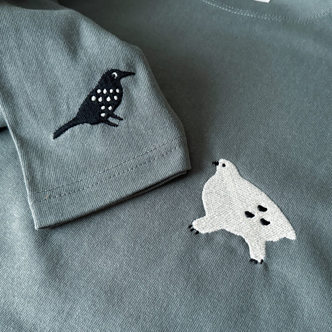 ライチョウとホシガラスの刺しゅうが入ったTシャツです。